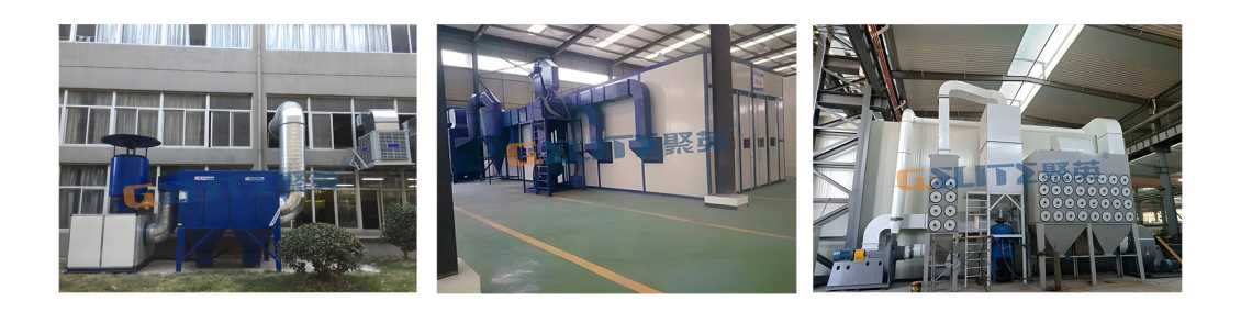 針對(duì)拋丸、噴砂等工藝產(chǎn)生的粉塵顆粒收集治理,根據(jù)收集形式不同可分為拋丸機(jī)預(yù)留口收集和噴砂房房體收集,配套旋風(fēng)除塵器+筒式/袋式除塵器。