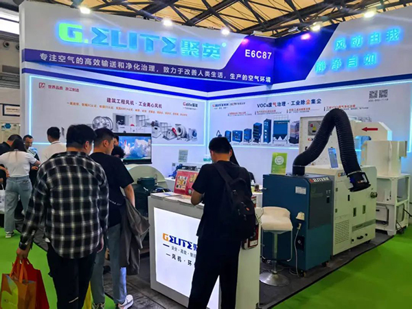 本次展會上,浙江聚英展示了過濾凈化風機箱、離心風機、濾筒除塵器以及AI智能煙塵凈化裝置,吸引了大量環(huán)保行業(yè)從業(yè)者、技術專家以及采購商的關注,全方面給客戶展示產品詳細、具體的應用場景,讓客戶一目了然。