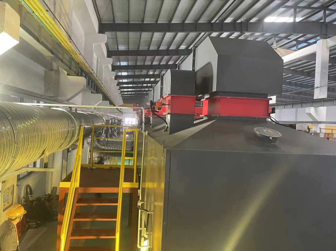 前端漆霧顆粒經(jīng)過干式漆霧墻進(jìn)行漆霧顆粒的收集后進(jìn)入緩沖管內(nèi)做勻風(fēng)處理,勻風(fēng)后廢氣在負(fù)壓引風(fēng)機(jī)的作用下進(jìn)入經(jīng)過干式過濾箱內(nèi)部初效、中效、高效三級過濾后,進(jìn)入處理系統(tǒng):活性炭吸附脫附催化燃燒凈化系統(tǒng)。