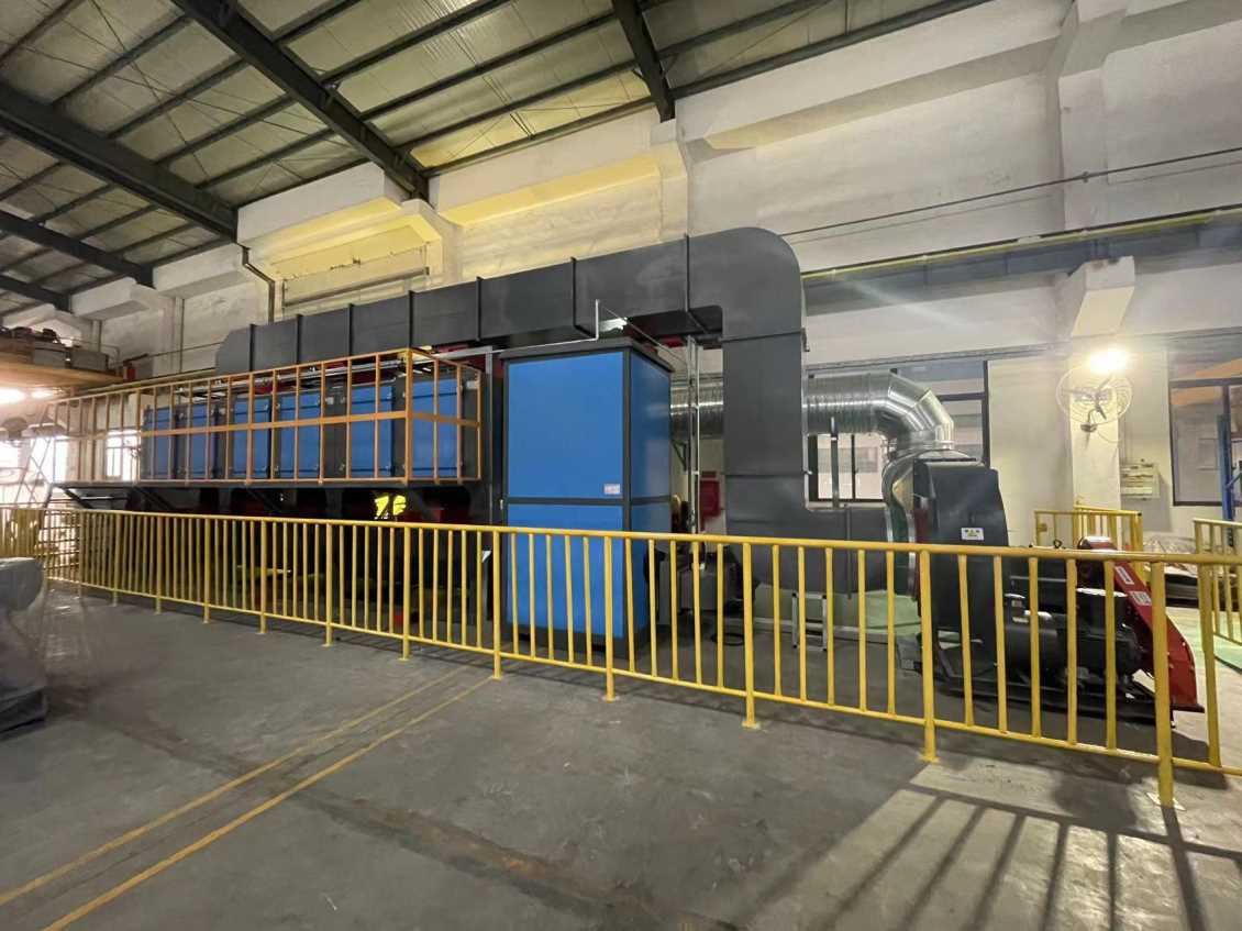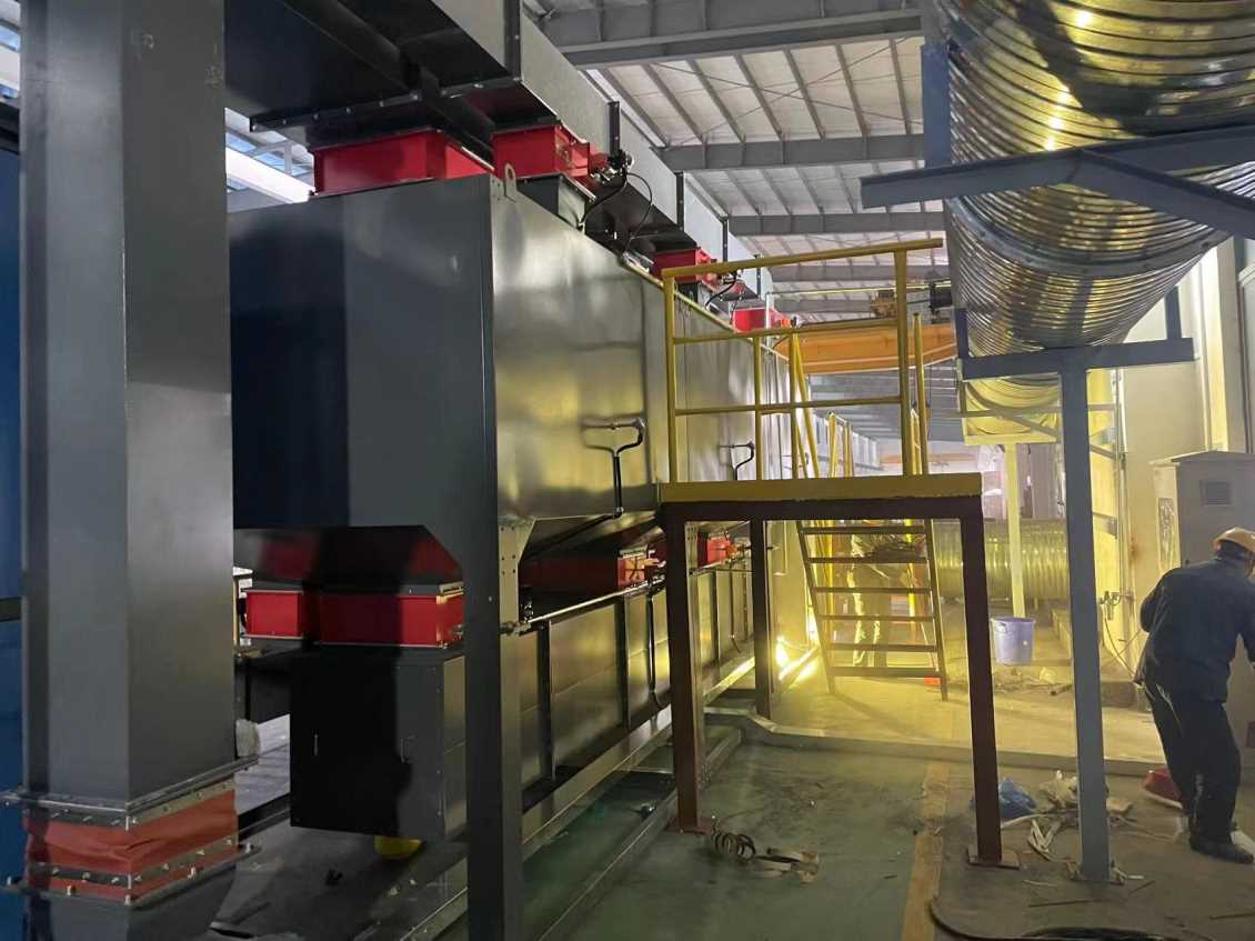 移動伸縮房 → 干式漆霧凈化墻 → 管路收集 → 干式過濾 → 活性炭吸附脫附催化燃燒設(shè)備→風(fēng)機(jī) → 達(dá)標(biāo)排放