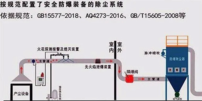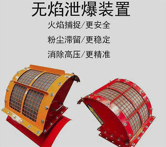 無焰泄放裝置也叫粉塵無焰泄爆裝置或者無焰泄放裝置是由火焰熄滅模板,泄爆片,防 爆接線盒和夾持器組成??砂惭b于室內(nèi)除塵箱體,泄爆片有信號裝置,可以通過接線盒與風(fēng)機(jī)或者其他設(shè)備聯(lián)動。當(dāng)發(fā)生粉塵爆炸時,爆破片對快速沖擊的爆燃壓力做出反應(yīng),并打開,以釋放壓力,膨脹的火球通過時打開的爆破片被熄滅模塊攔截。從而達(dá)到阻隔火焰以及通過打開防 爆門的燃燒和未燃燒的粉塵的作用,防止二次爆炸引起的傷害。